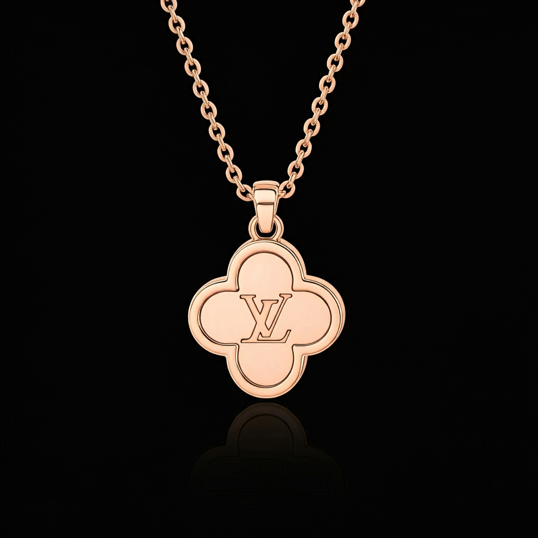 925 Silver LV Logo Necklace | Lucky Clover Pendant | Designer-Inspired Branded Jewelry Gift for Her